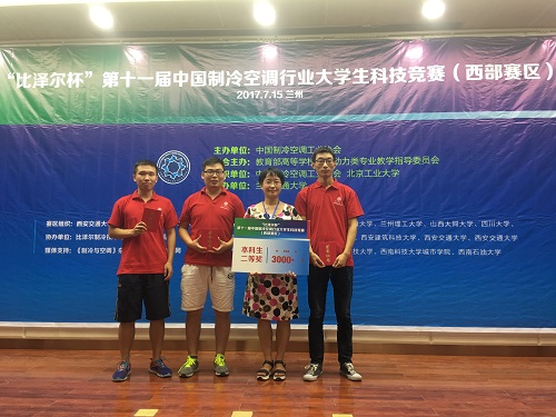 7月14日-15日,“比泽尔杯”第十一届中国制冷空调行业大学生科技竞赛西部赛区竞赛在兰州交通大学成功举办,在本次竞赛中由我校能源与建筑学院杜芳莉老师指导,吴晗、张富康、陈达明三位同学组成的“果保”队荣获本科组二等奖的优异成绩。