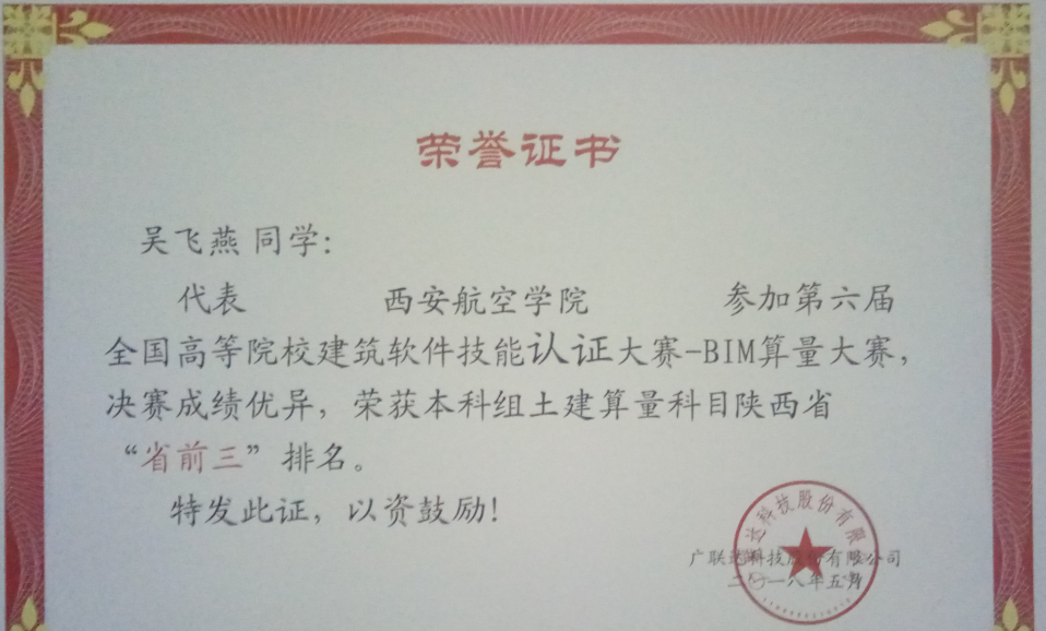 2018年5月27日,全国29个省份,314所高校,434支团队的17000余名学生参加了第六届全国高等院校建筑软件技能(BIM算量)大赛。本院能源与建筑学院的“新时代”队与“新梦想”队共52名学生,经过4个小时的激烈比拼,最终由党伟老师带队,党伟老师、汪丽老师、张琛老师指导的“新时代队”队获得本科组团体二等奖,由杨焜老师、周俊屹老师、雒亚男老师指导的“新梦想队”获三等奖的好成绩,其中吴飞燕同学获得陕西省土建算量第一名的优异成绩。