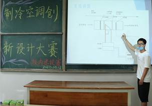 竞赛围绕“生态和谐的制冷空调技术”主题,比赛开始前,主持人向参赛学生介绍了本次比赛的意义,并强调了比赛规则及评分标准。按照比赛流程,每组选手展示了自己创新设计作品,并简明扼要阐述出自己作品的创新点。针对参赛作品评委老师逐一指出存在的问题及改进建议。