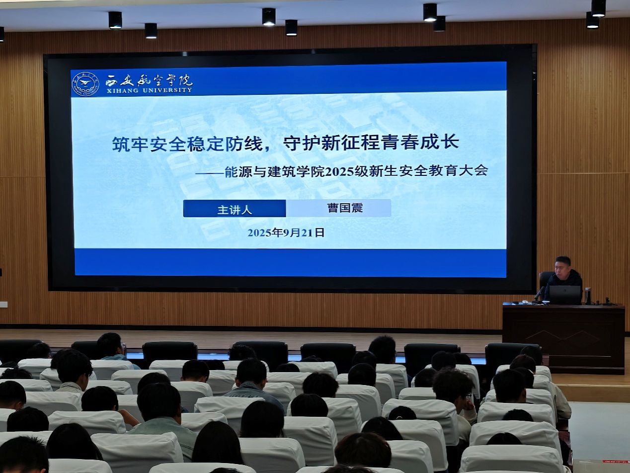为切实增强新生的安全意识和自我防护能力,筑牢校园安全防线,助力新生顺利开启大学新生活,9月21日18:00,能源与建筑学院关工委在阎良校区报告厅成功举办了以“筑牢安全稳定防线,守护新征程青春成长”为主题的2025级新生安全教育大会。学院关工委主任、党总支书记曹国震亲自为全体新生讲授了内容丰富、意义深远的安全教育第一课。