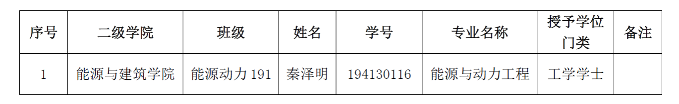 能源与建筑学院2023届本科毕业生建议补授学士学位名单