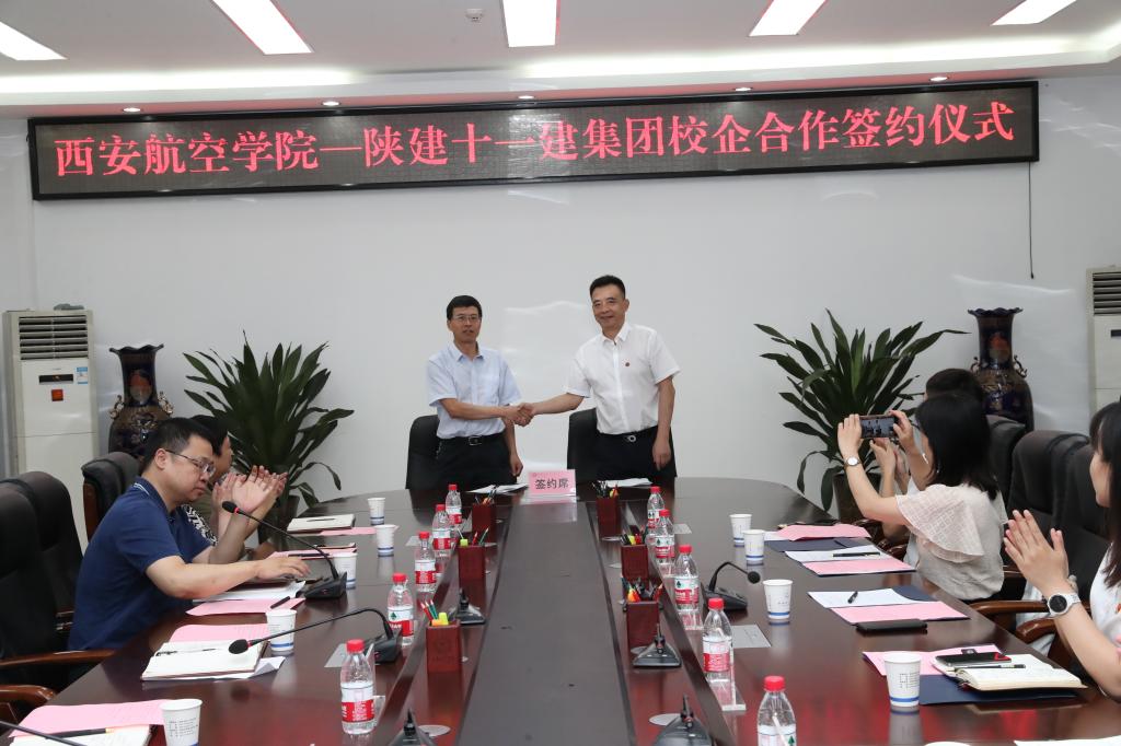 7月2日上午,我校与陕建十一建集团校企合作签约仪式在莲湖校区第三会议室举行。陕建十一建集团总经理刘红卫、党总支副书记、副总经理、集团人力资源部副经理王晓敏等,我校副校长宋文学、教务处处长吴晓葵、电子工程学院院长毕杨、能源与建筑学院院长杨亚萍、党总支书记曹国震等出席签约仪式。仪式由曹国震主持。
