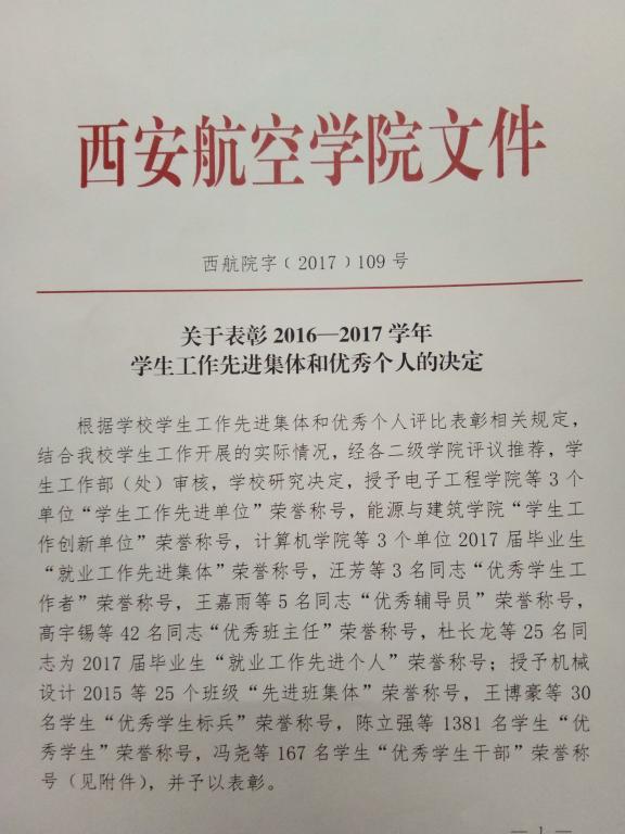 华体会(中国)2016――2017学年“学生工作创新单位”荣誉称号。