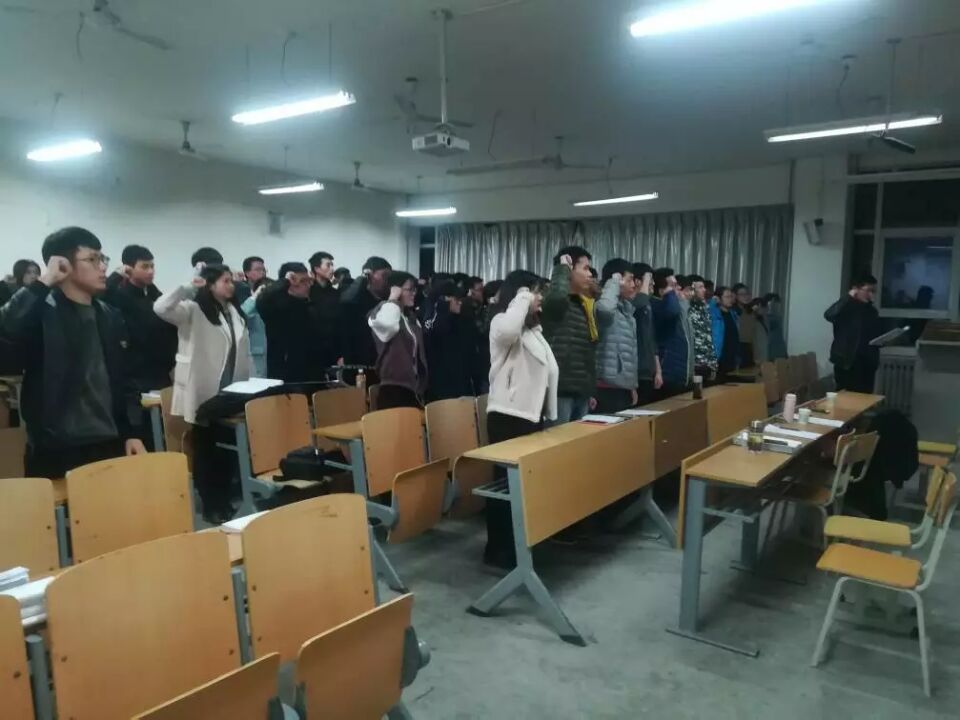 大会的最后,高振江老师带领我院党员面向党旗庄严宣誓,他们高亢激昂,声音久久回荡在教室里,真正展现出了对党的崇高敬意。