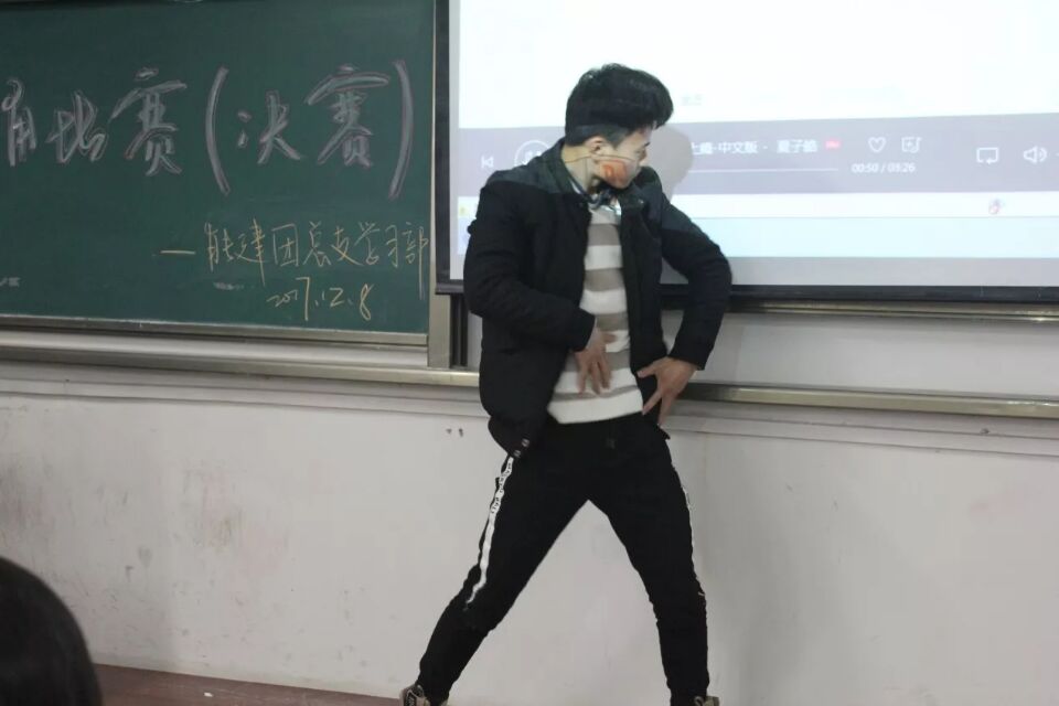 比赛步入尾声,开始紧张的打分环节。为活跃现场氛围,由张伟亮同学带来一支舞蹈过后,进入了现场有奖互动的环节,大家踊跃参与,使得现场氛围一度高涨。
