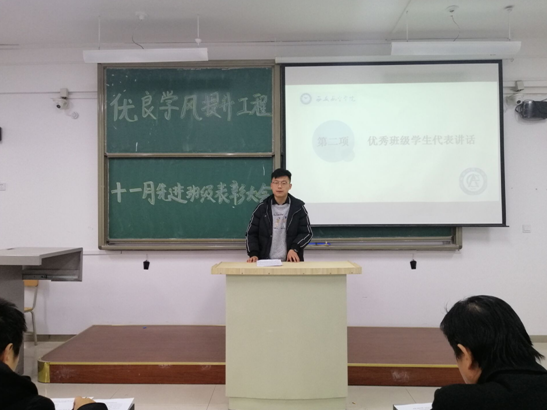 接着,我院副院长吴奇宣读了关于十一月优秀班级的决定,对十一月的优秀班级进行了奖励,各位老师给各优秀班级颁发了奖品,吴院长希望各个优秀班级能够继续保持积极向上的学习风气,继续努力,为学院的学风提升工程做出表率。