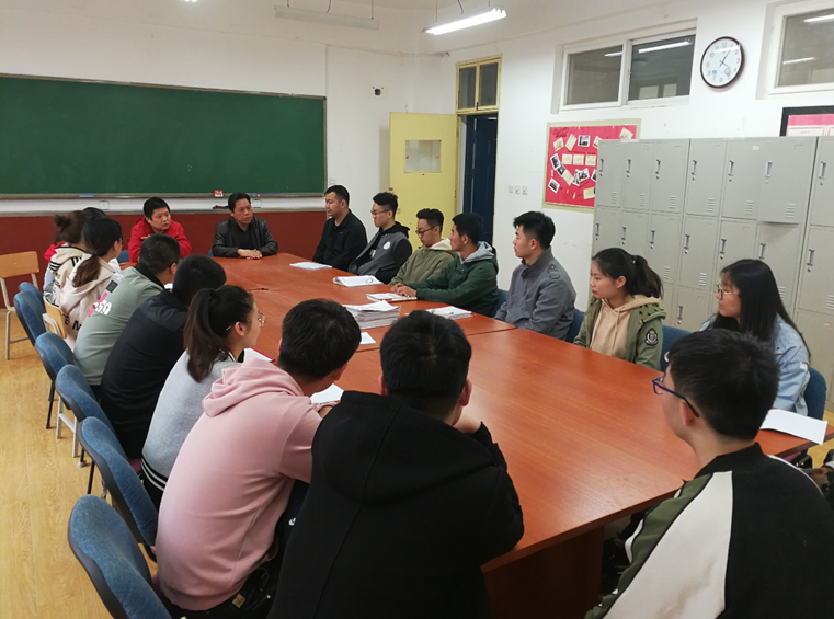 会上刘剑坤书记首先祝贺考研学生取得良好成绩,然后指出此次座谈会的目的是为了帮助大家在研究生复试、调剂阶段能够增加录取的机会,相互交流。