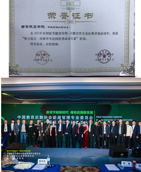 2019年4月12日中国教育后勤协会能源管理专业委员会在广西桂林召开了第一届第五次全体委员大会,我校学校后勤保障处副处长张瑞杰、能源与建筑学院学生管理科科长高振江,能源与建筑学院节能减排创新协会会长杨睿(建环2015班)同学参加了本次会议。会上中国教育后勤协会能专会为我院节能减排协会协会颁发了荣誉证书和奖牌,并表示热列的祝贺,同时对我校工作做出了极大肯定。