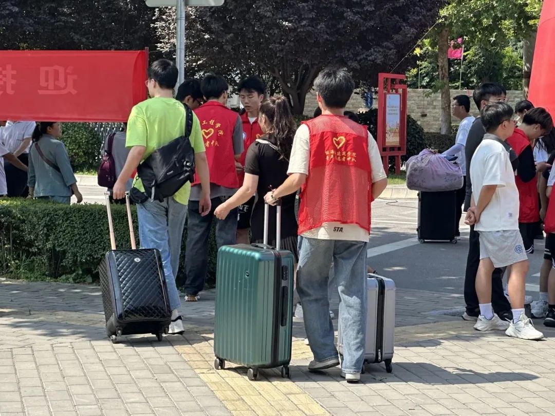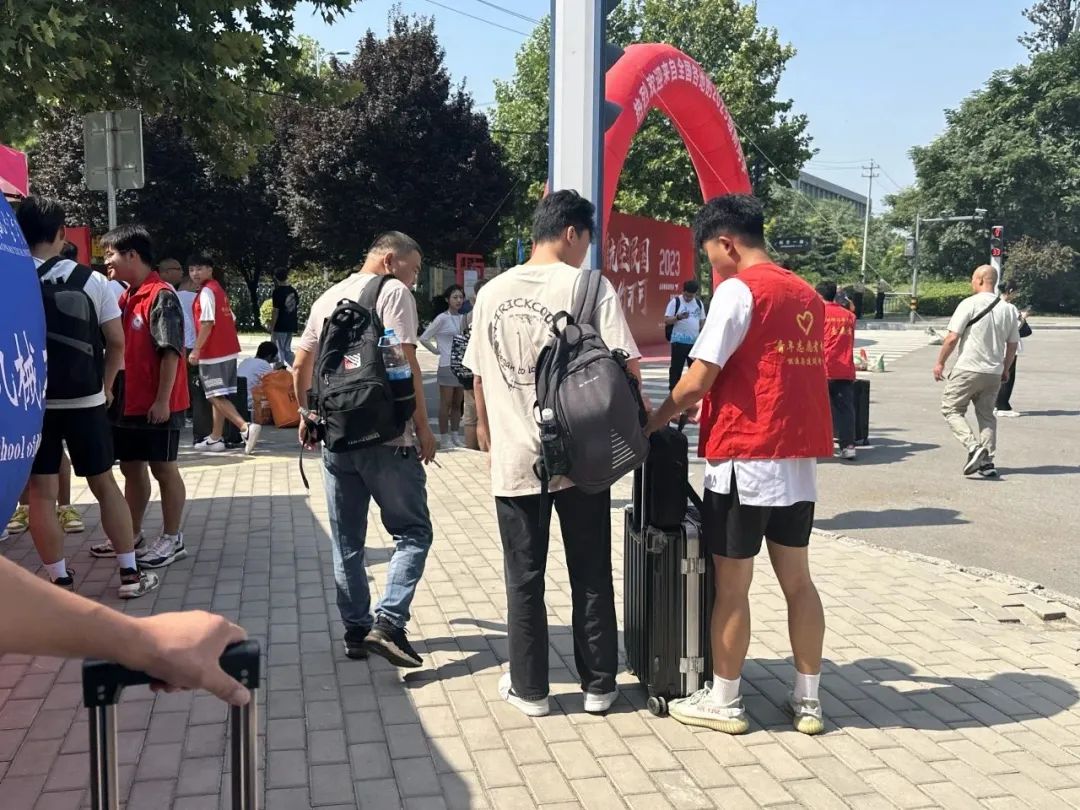 我院号召了一群热心的志愿者,明确分工、积极行动。从校园引导到行李搬运、从信息咨询到入住登记……统一身穿红色志愿者服装的迎新工作人员各个都精神饱满、整装待发,耐心等待着新生的到来。