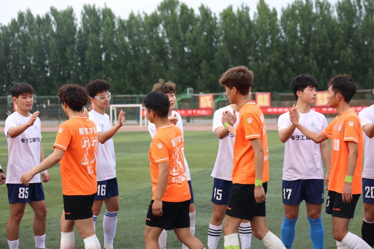 开幕式结束后,随着裁判员的哨声响起,能源与建筑学院与电子工程学院激烈的较量正式开始。对战双方拼抢积极,高潮迭起。带球突破、抢断、传球、射门,场上身着橙色球衣的能源与建筑学院的队员们和身着白色球衣的电子工程学院的队员们激情澎湃,场下观众席上啦啦队呐喊助威烘托起热烈的气氛。最终,第一天的比赛圆满结束,能源与建筑院以3:0的比分赢得首场比赛的胜利,呐喊声、欢呼声响彻足球场。