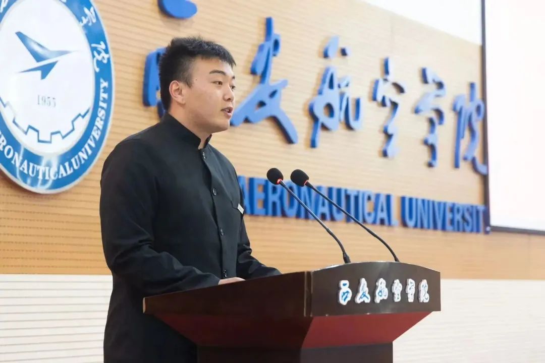 第二项,党总支副书记高振江发言,高书记表示此次换届大会一方面是对老干部的表扬和感谢,另一方面是激励新的学生干部,继承优点,砥砺创新。并对所有学生干部提出两点希望:一是要永葆初心,拼搏奋斗,二是要明确职责,认真负责,用严谨的工作作风、踏实的工作态度投入到生活和学习中去,用智慧和汗水书写美好的新篇章。