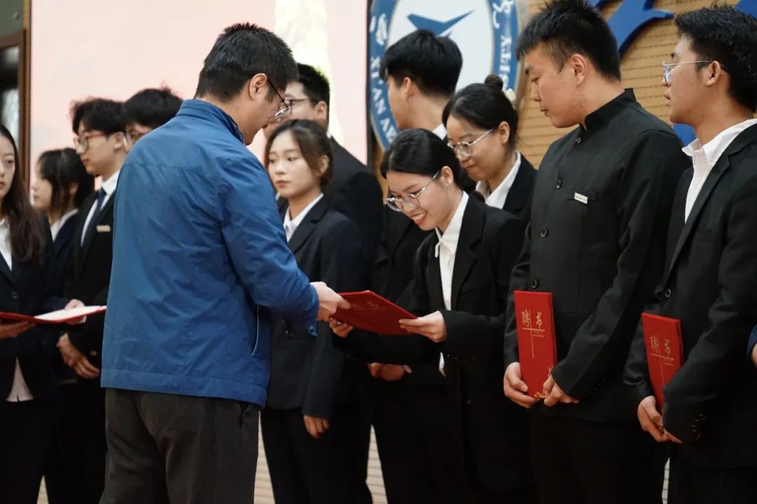 第九项,各部门负责人给各部门大一干事领发工牌并合影留念
