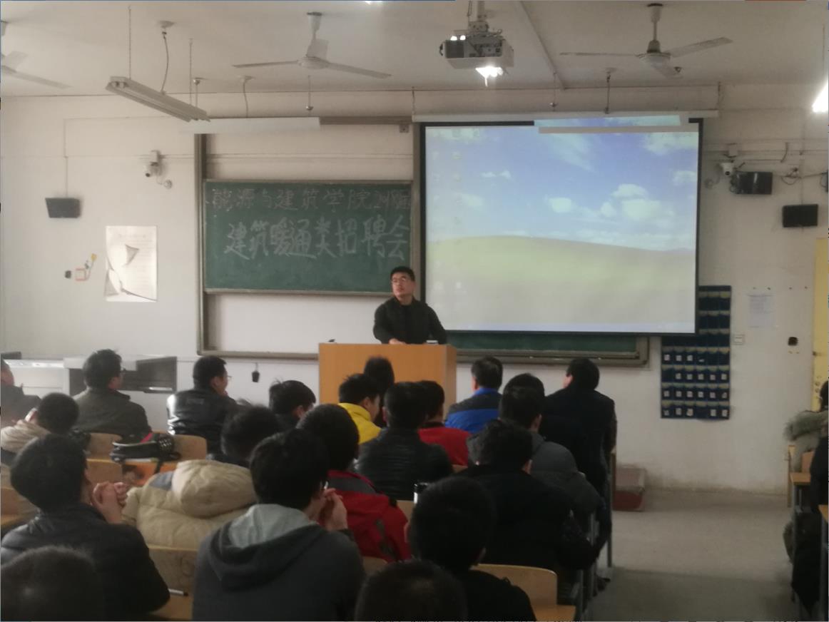 2017年12月27日下午2点整,我院于阎良校区教学楼1234教室举行了能源与建筑学院2018届建筑暖通类招聘会,出席本次招聘会的有能源与建筑学院副院长雒新峰、学生管理科科长高振江、毕业辅导员高韩锋,我院毕业生积极参加本次招聘会。
