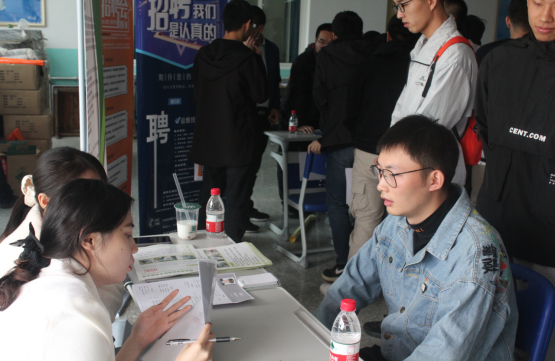 招聘会中,应聘学生签到后了解企业需要的人才和未来的薪酬区间,并将简历投递给自己心仪的公司,与企业负责人进行了交流,争取入职机会。期间,刘剑坤书记一行人向每个企业代表表达谢意,并表示,学院愿意为用人单位提供力所能及的帮助,愿意为企业和学生建立良好的沟通互动平台,也希望用人单位能积极录用我院应聘学生。